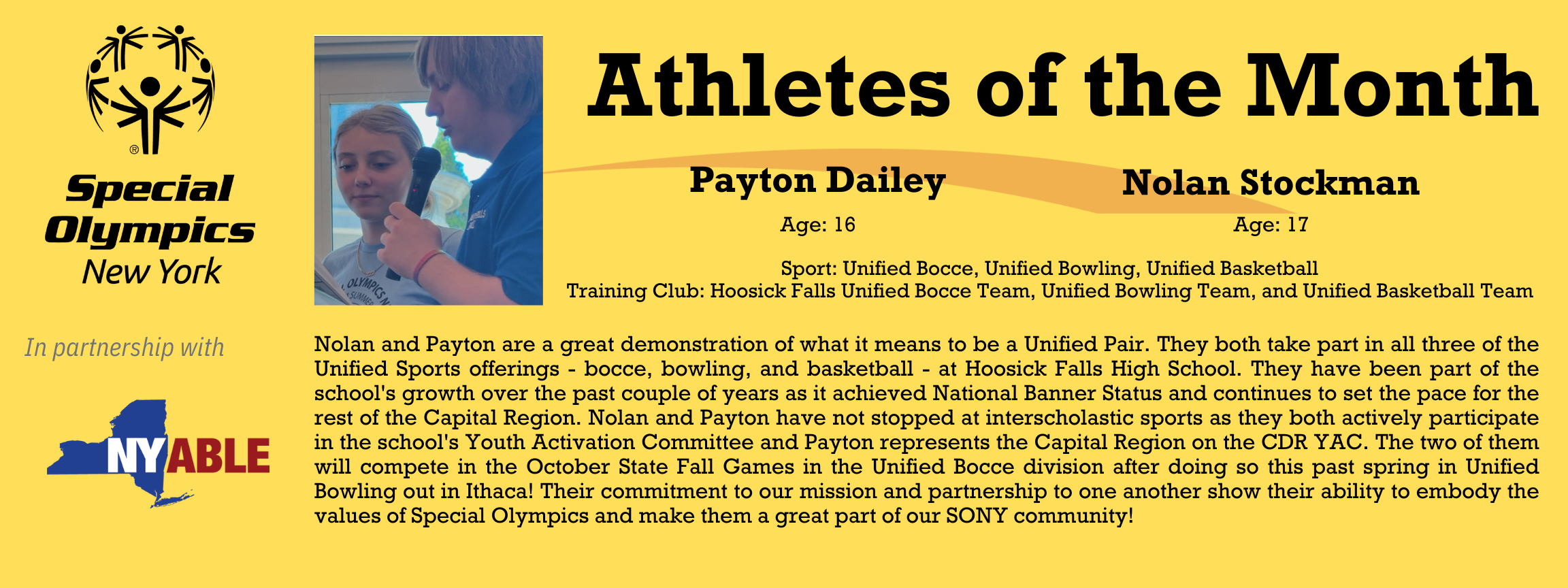 Special Olympics New York and NY ABLE are proud to highlight the achievements and character of individuals with and without disabilities throughout NYS.